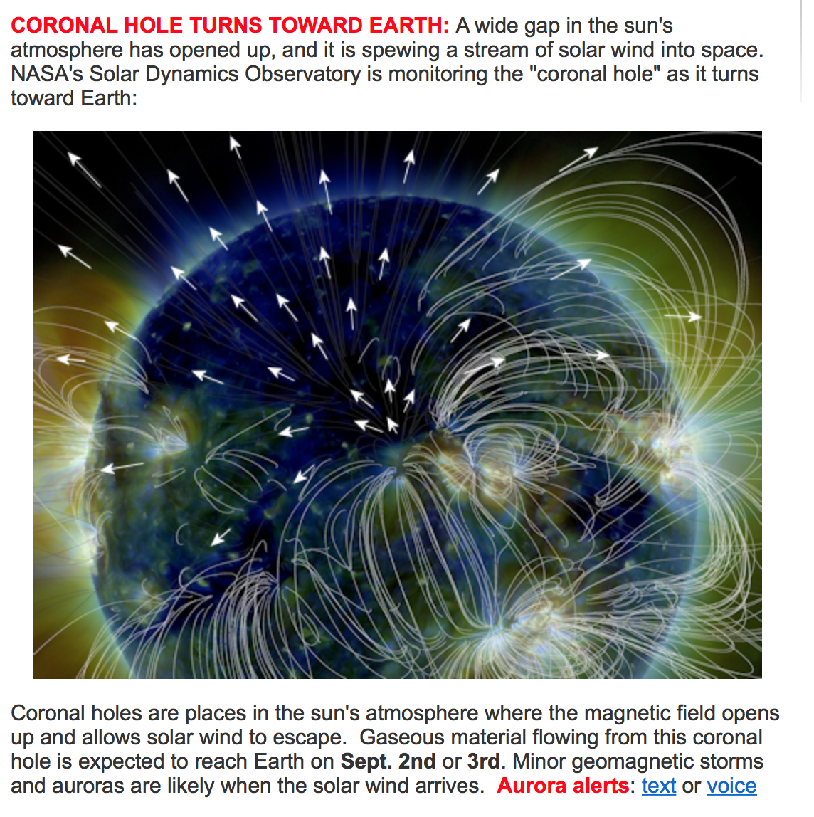 Events that I “feel” as a massive onslaught of electro-sensitivity are those which, according to Spaceweather, aren’t meant to be registering on planet earth yet…such as brand new sunspots that have just appeared on the face of the sun or solar winds that haven’t “arrived” here yet or where, apparently, a “near miss”. Yesterday was point in case…one of the worst days, symptomatically, that I’ve had for a long time, I was almost clawing the walls with electro-pain by bedtime and here’s this morning’s news on the Spaceweather website (see right and below). I’ve registered the appearance of a new sunspot countless times as extreme electro-pain in the body, long before it has apparently